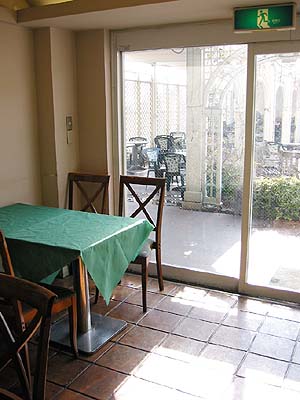味吉兆が移転する場所にあったカフェ。窓際の席から外のガーデンショップが見えています。
