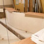 厨房区画内の床・腰壁が、モルタルで覆われました。
