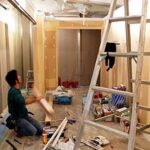 ベンチシートのベースとなる部分と背もたれができ上がりました。ベースの上にウレタンにレザーを巻いた座面を置くと、ベンチの完成です。背もたれの塗装はバターミルク塗装でこれからサンドペーパーをかけます。ベースの中は収納として使います。