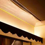 カウンター両脇の壁と間接照明上部の壁もアプリコットオレンジにしました。